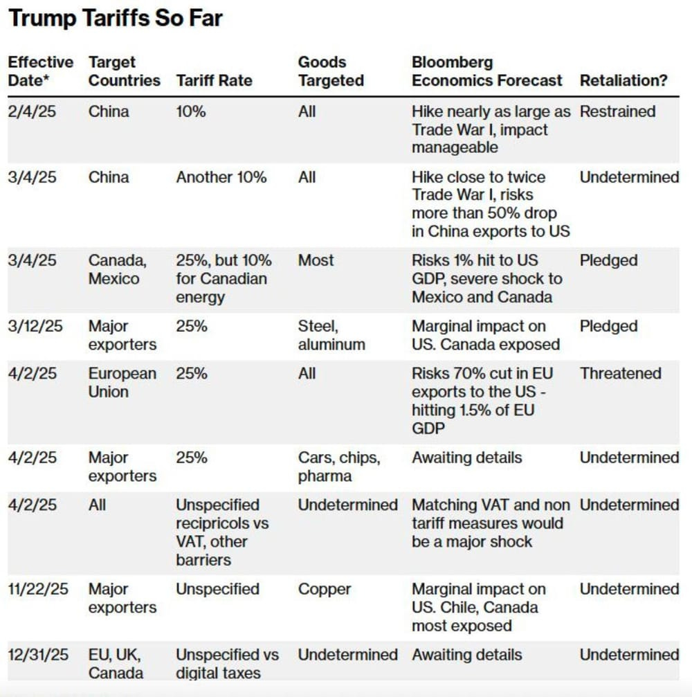 Retaliation escalates: Ontario threatened to cut power to 1.5 million New Yorkers, while Mexico and China plan counter-tariffs on US agriculture and tech.