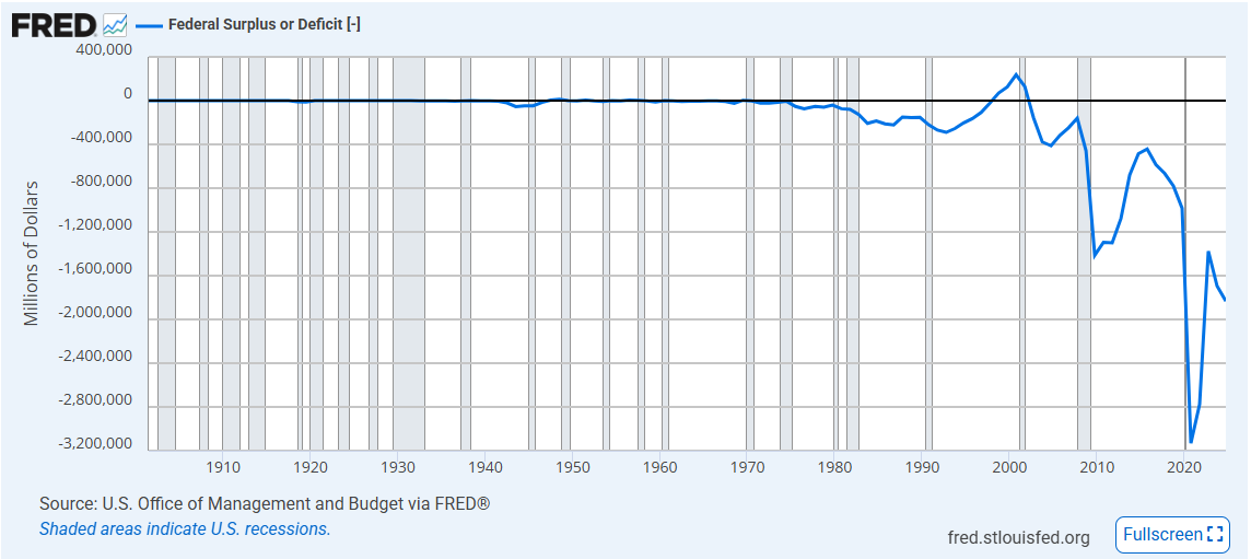 Source: FRED (The US Federal Deficit since 1900)